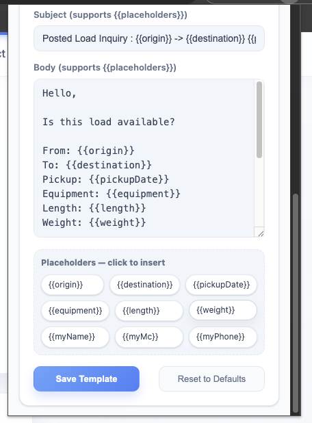 Set your default subject and message body for broker emails. This saves time on every load.